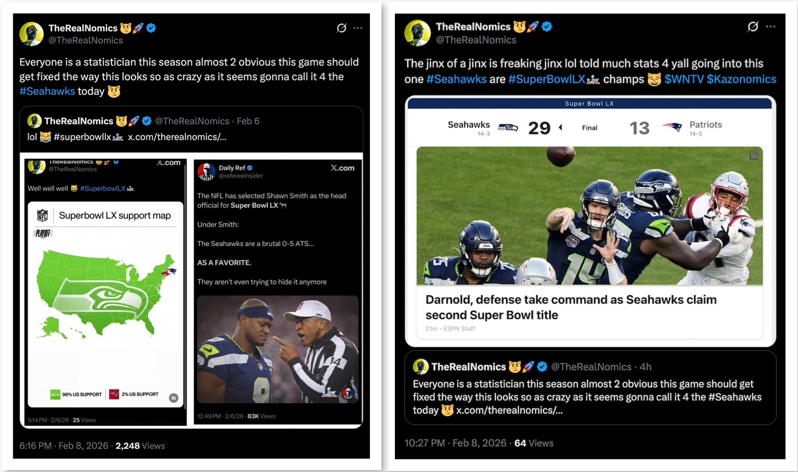 SuperBowl 60 – Seattle Seakhawks vs New England Patriots– ***Updated Feb8th 2026***